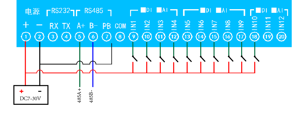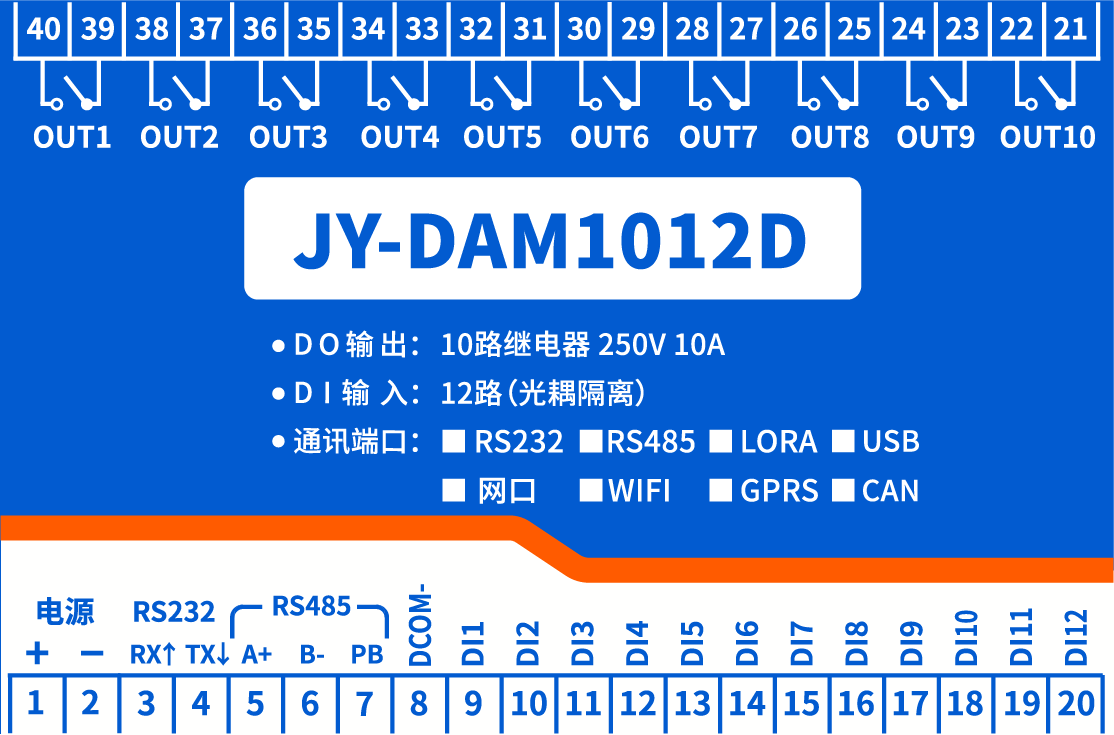 DAM1012D 工業(yè)級繼電器控制板,10路繼電器控制(DO)12路開關(guān)量采集(DI) ,10路繼電器控制輸出,觸點(diǎn)隔離;12路開關(guān)量輸入;支持RS232或隔離RS485通訊接口;標(biāo)準(zhǔn)Modbus協(xié)議,支持Modbus RTU/ASCII;支持點(diǎn)動(dòng)輸出,聯(lián)動(dòng)功...