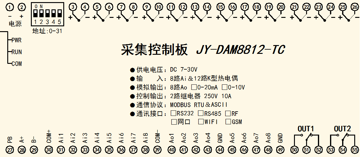 功能說明:2DO+8AI+8AO+12PT