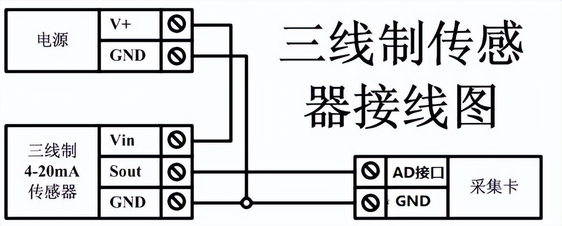 下圖中采集卡中的AD接口指AI_1-AI_8,GND指COM-。