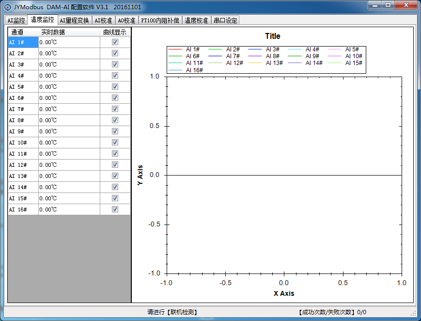 聚英組態軟件可監控菜單下可以實時監控每路的溫度及變化曲線,并可導出歷史數據和歷史曲線記錄。