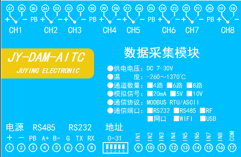 功能說明:8DO+16AI+20DI