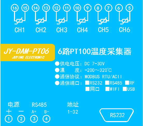 功能說明:6路PT100