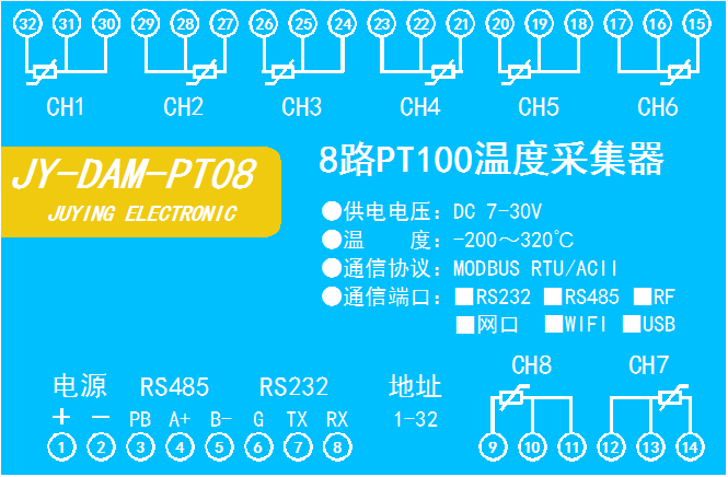 功能說明:8路PT100