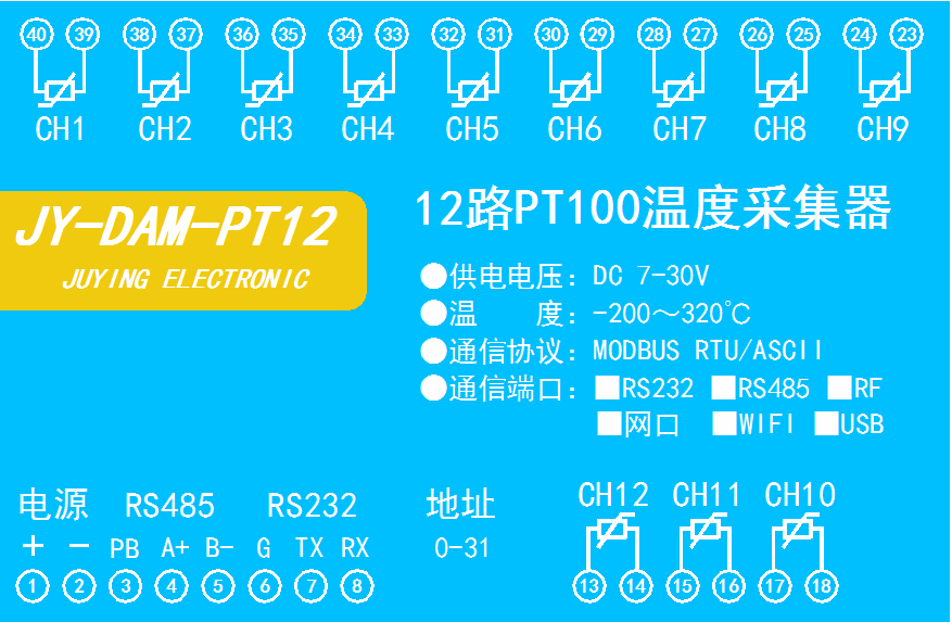 DAM-PT12-RS232+485 | ● | ● | ● | 12 | ||