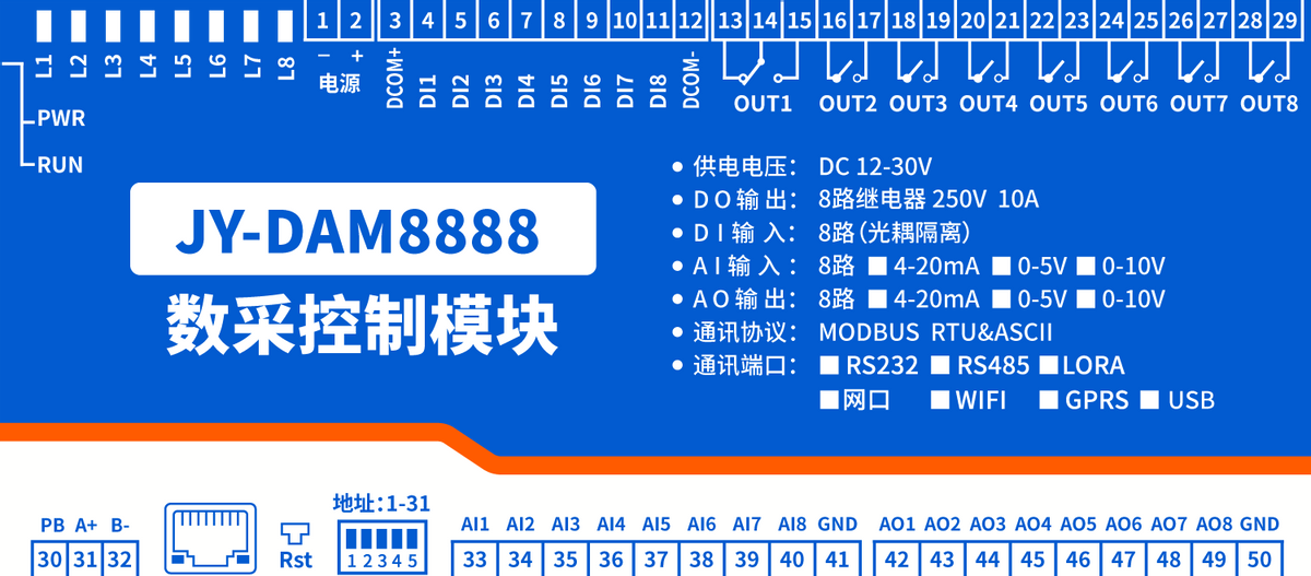 DAM系列設備地址默認為1,使用廣播地址為254進行通訊,用0無法通訊。