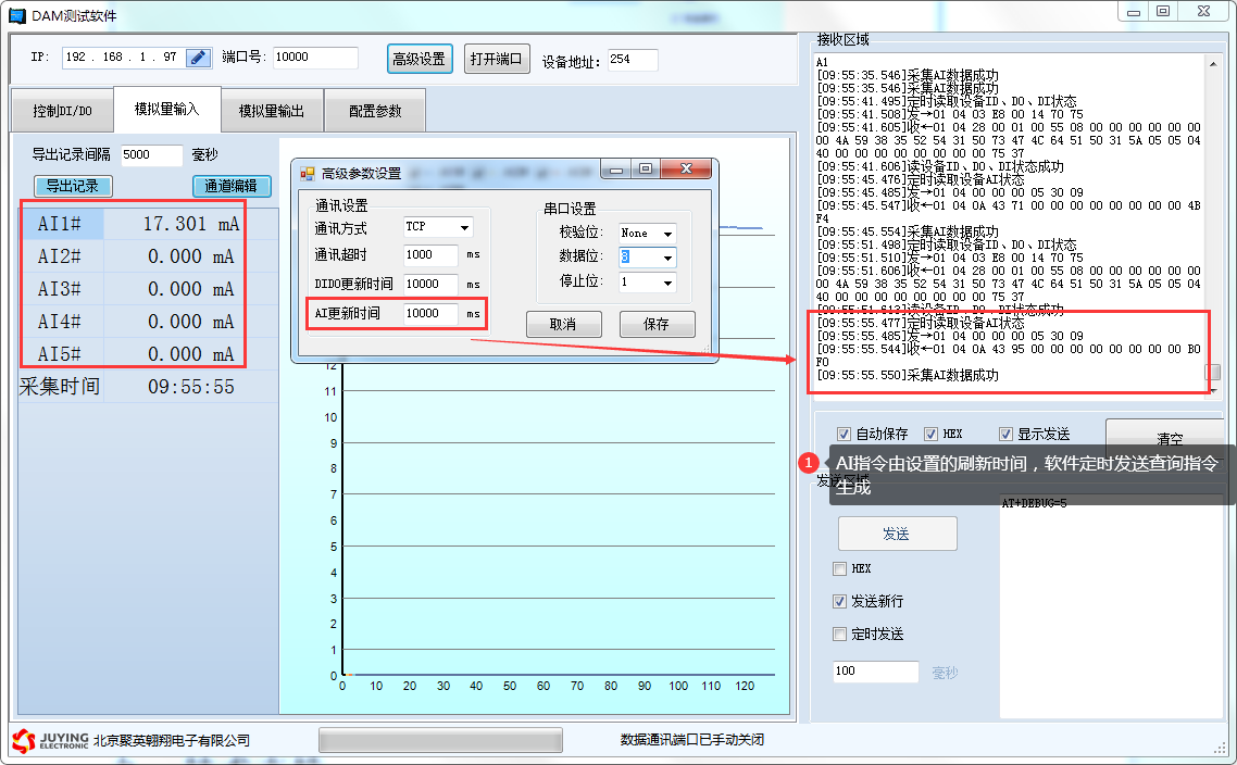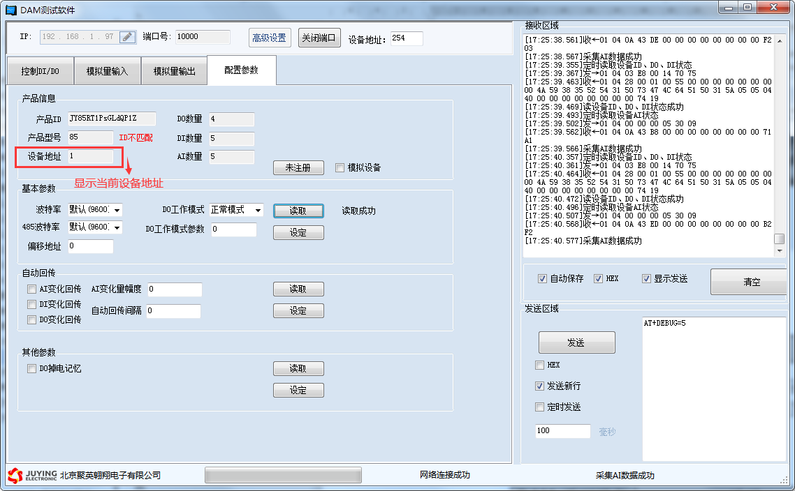詳細使用說明參考:JYDAM調(diào)試軟件使用說明文檔