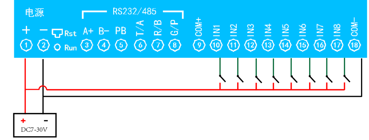 模塊本身帶有光耦輸入和繼電器輸出的板卡模塊,在該模式下,光耦每輸入一次信號(hào),對(duì)應(yīng)的繼電器會(huì)吸合,其他未輸入信號(hào)光耦對(duì)應(yīng)繼電器會(huì)斷開。即: