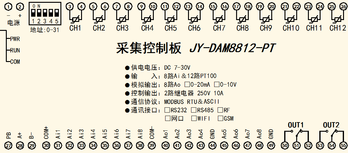 功能說明:12DO+12AI