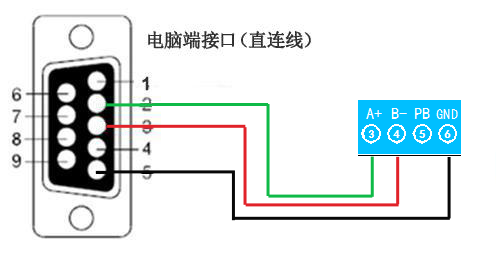 電腦自帶的串口一般是RS232,需要配232-485轉換器(工業環境建議使用有源帶隔離的轉換器),轉換后RS485為A、B兩線,A接板上A端子,B接板上B端子,485屏蔽可以接GND。若設備比較多建議采用雙絞屏蔽線,采用鏈型網絡結構。