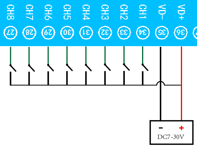 控制1路繼電器(以第一路開為例,其他通道參照本例)